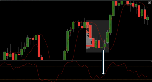 Bollinger Bands und Keltner Channel sind die einzigen Indikatoren, die ich nach 30 Jahren Trading immer noch hin und wieder benutze. Beginnenden Tradern können sie dabei helfen, sich einen schnellen Überblick über die Volatilität und Gesamtsituation eines Marktes zu verschaffen. John Bollinger bemerkte einmal, dass es keinen Indikator gibt, über den so viele Missverständnisse und Märchen kursieren. Dieses konnte ich bei Tradern ebenfalls beobachten. John Bollinger ist ein äußerst sympathischer Mensch, der allerdings nie ein Daytrader war. Vor ein paar Jahren machte er eine interessante Bemerkung. Er schlug vor, für das Daytrading die Anzahl der Perioden und die Standardableitung zu verändern und seinen Indikator mit einem Momentum Indikator zu verbinden. Damit lag er richtig, denn nirgendwo ist Follow Through so wichtig wie bei der Königsdisziplin des Tradings. E-Mini S&P, 5 Periods BB and RSI, 1-minute Chart
