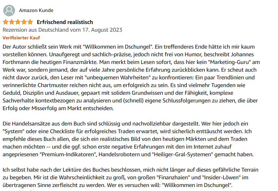 Escrever livros compreensíveis sobre um tema complexo requer muito trabalho e, acima de tudo, tempo. Este livro é o último de uma série que abrange todas as áreas da negociação. O sucesso sustentável na negociação consiste em um processo de “aprendizagem ao longo da vida” que não pode ser dominado com algumas “configurações”. A negociação diária é a classe principal da negociação. Com isso em mente, deve-se também fazer uma pergunta fundamental antes de se aprofundar nessa área. A pergunta é: